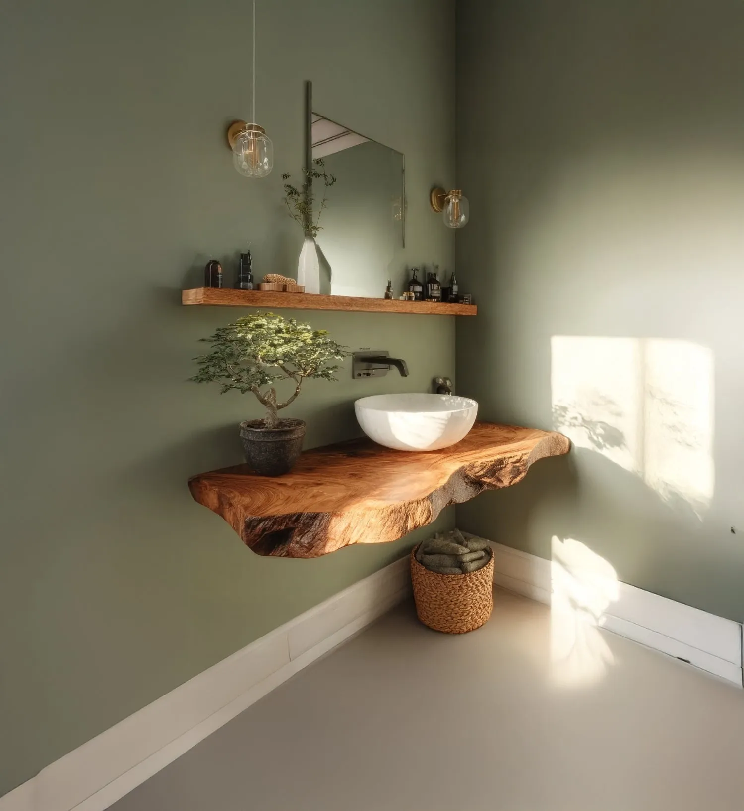 Lighting shapes the mood: soft wall sconces on dimmers reduce glare on pale timber and create a spa-like calm. For small rooms, a frameless round mirror keeps reflections generous without visual heaviness. Mount brackets directly into framing wherever possible; if the wall is masonry, use sleeve anchors rated for your expected loads. We can tone the finish slightly cooler or warmer to coordinate with tile or stone you have already selected. A short routine of wiping and drying after use keeps the surface looking its best for years. For households with varied routines, a small tray near the bowl contains soap and brushes neatly so the ledge remains calm and open.